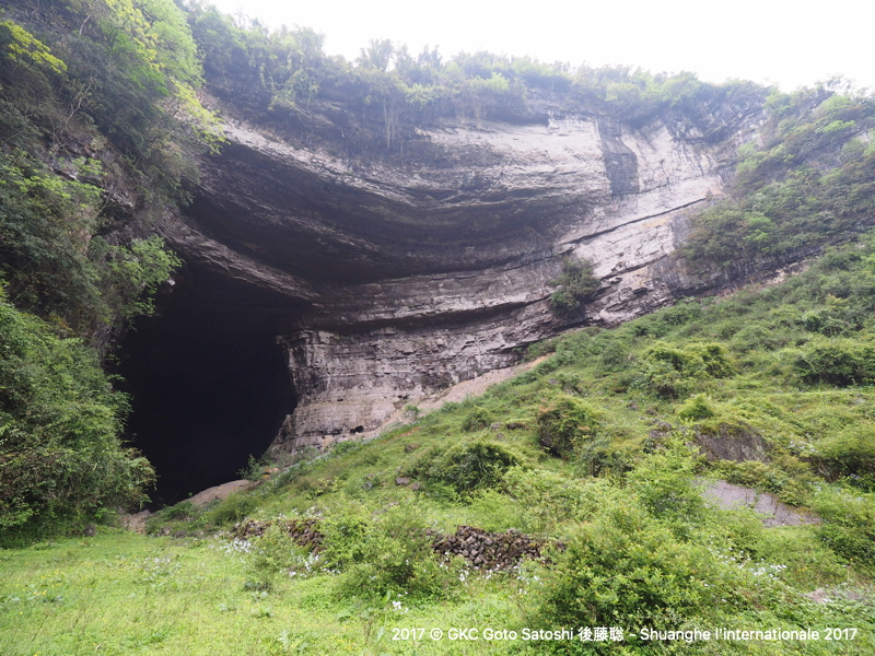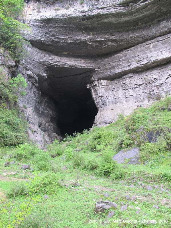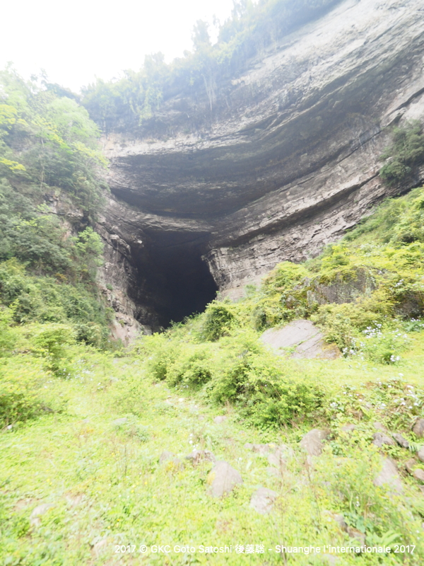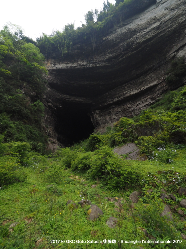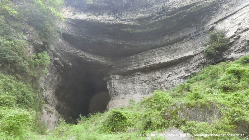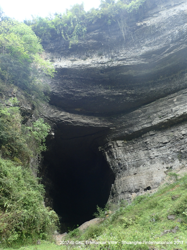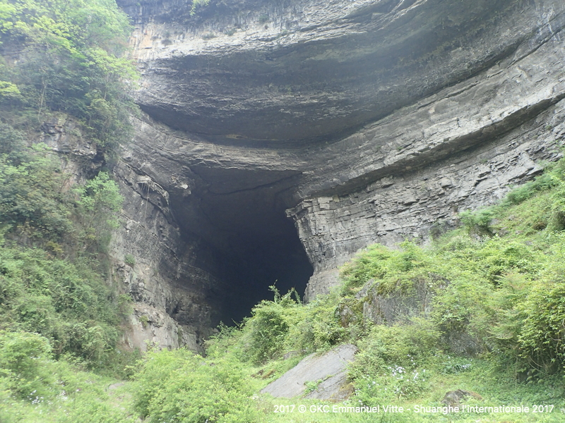 Le porche de Xiadong est une galerie de section hexagonale béante de 40 m de large. Cette entrée est emblématique du réseau de Shuanghedong. Cette perte est située à l’extrémité d’une vallée borgne, la gorge de Muzhutanggou, qui n’est alimentée que par des écoulements temporaires.