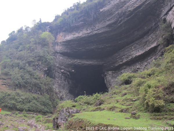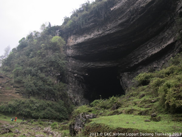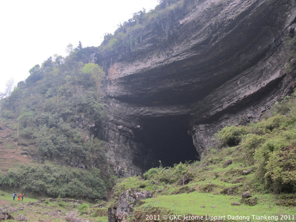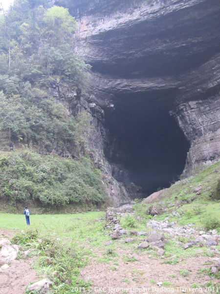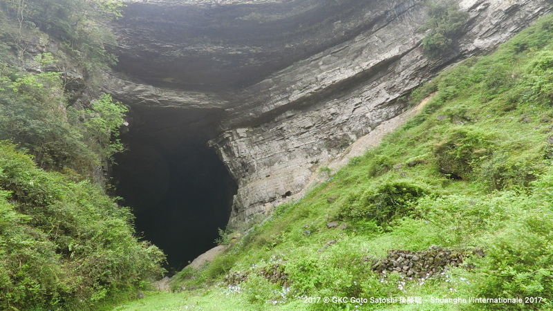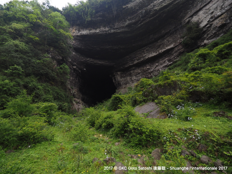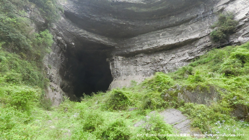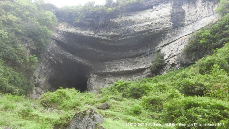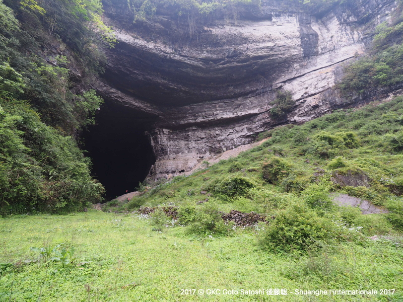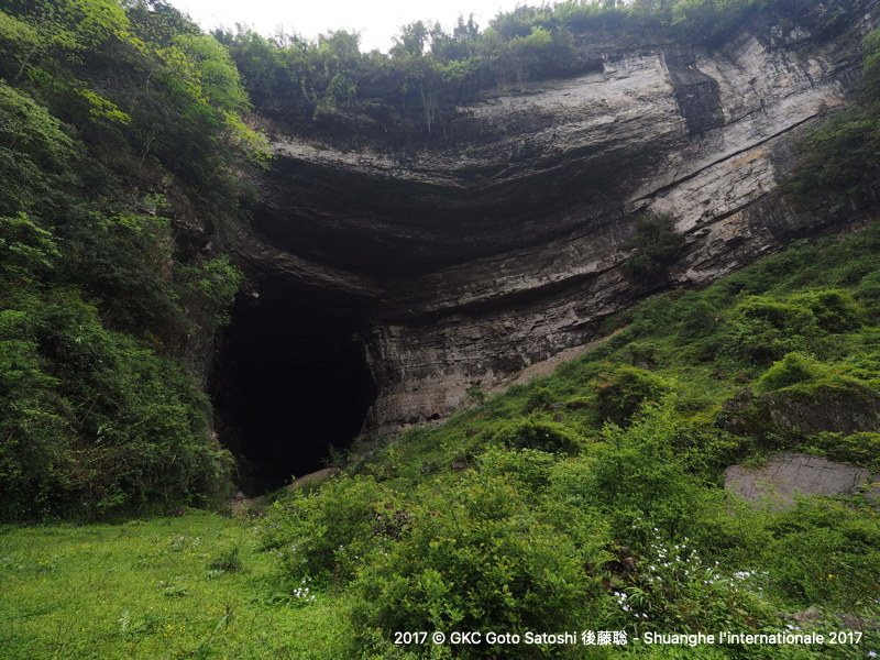 Le porche de Xiadong est une galerie de section hexagonale béante de 40 m de large. Cette entrée est emblématique du réseau de Shuanghedong. Cette perte est située à l’extrémité d’une vallée borgne, la gorge de Muzhutanggou, qui n’est alimentée que par des écoulements temporaires.
